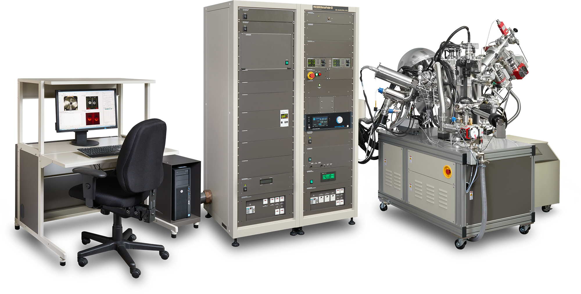 PHI VersaProbe III - cистема сканирующей рентгеновской фотоэлектронной спектроскопии (технология XPS, ESCA, РФЭС). Данная система анализа поверхностей имеет улучшенную производительность и ряд дополнительных технических возможностей для полноценного изучения современных материалов. VersaProbe III является единственным прибором РФС, в котором осуществляется сканирование рентгеновским лучом, подобно работе SEM (СЭМ), что обеспечивает простую и комфортную работу с прибором.